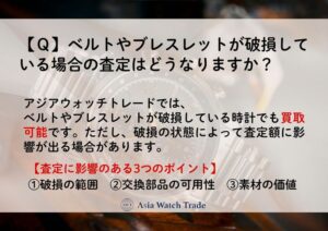 アジアウォッチトレードでは、ベルトやブレスレットが破損している時計でも買取可能です。