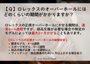 ◆ ロレックスの正規オーバーホールの納期目安