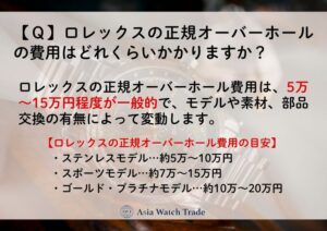 ◆ ロレックスの正規オーバーホール費用の目安
