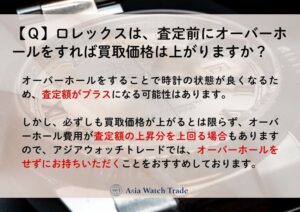 オーバーホールをすることで時計の状態が良くなるため、査定額がプラスになる可能性はあります(非正規店でのOHの場合は査定額が下がることもあります)。