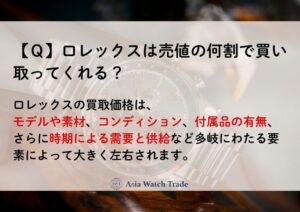 ロレックスの買取価格は、モデルや素材、コンディション、付属品の有無、さらに時期による需要と供給など、多岐にわたる要素によって大きく左右されます。