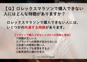 ロレックスマラソンで購入できない人には、いくつかの共通する特徴があります。