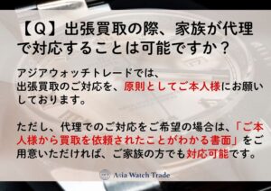 アジアウォッチトレードでは、出張買取のご対応を、原則としてご本人様にお願いしております。