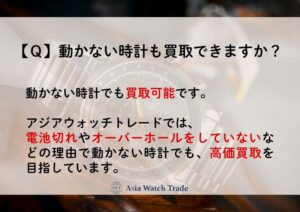 電池切れやオーバーホールをしていないなどの理由で動かない時計でも、アジアウォッチトレードでは高価買取を目指しています。