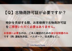 時計を売却する際、お客様側で古物商許可証をご用意いただく必要はありません。