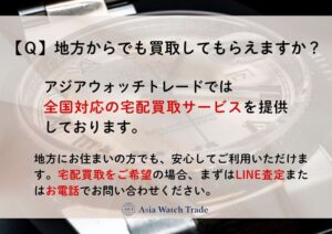 はい、アジアウォッチトレードでは全国対応の宅配買取サービスを提供しております。地方にお住まいの方でも、安心してご利用いただけます。
