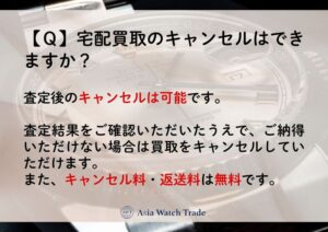 また、キャンセル料・返送料は無料です。時計は丁寧に梱包し、弊社負担でご返送いたしますので、ご安心ください。