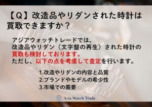 アジアウォッチトレードでは、改造品やリダン(文字盤の再生)された時計の買取も検討しております。