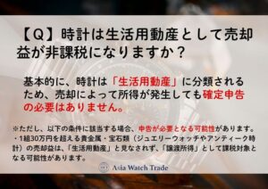 基本的に、時計は「生活用動産」に分類されるため、売却によって所得が発生しても確定申告の必要はありません。