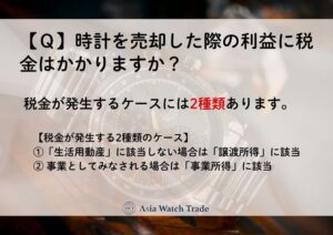 時計を頻繁に売買して利益を得ている場合、それが事業的な活動とみなされると、売却益は事業所得として課税されます。