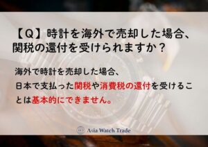 海外で時計を売却した場合、日本で支払った関税や消費税の還付を受けることは基本的にできません。