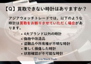 アジアウォッチトレードでは、以下のような時計は買取をお断りさせていただく場合があります。