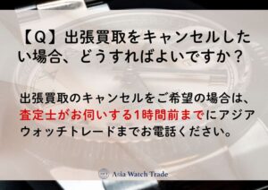 出張買取のキャンセルをご希望の場合は、査定士がお伺いする1時間前までに当社までお電話ください。